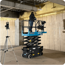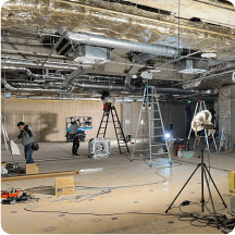 設備状態の確認、各所の採寸など、現地調査を行います。お客様にお立会いいただくことも可能です。